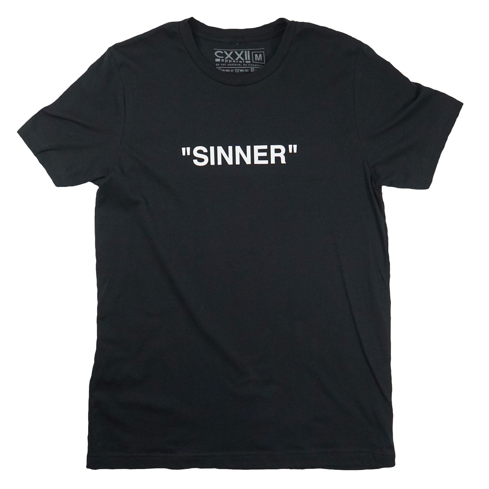 The CXXII Apparel Sinner & Forgiven "Minimalist" Black Standard tee.