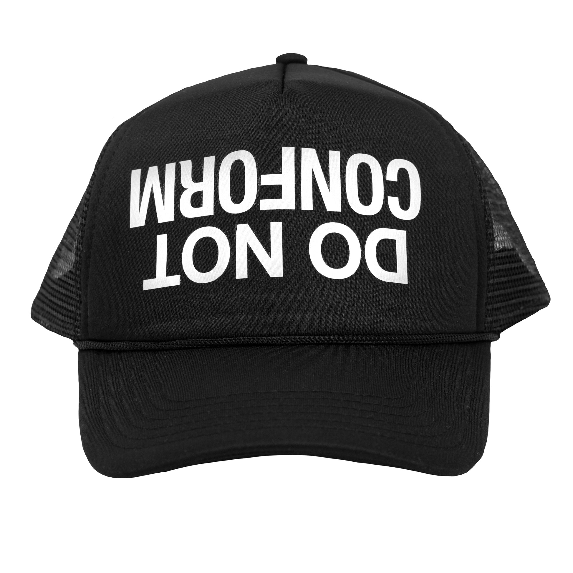 Do Not Conform "ndsᴉpǝ poʍu" Black Trucker