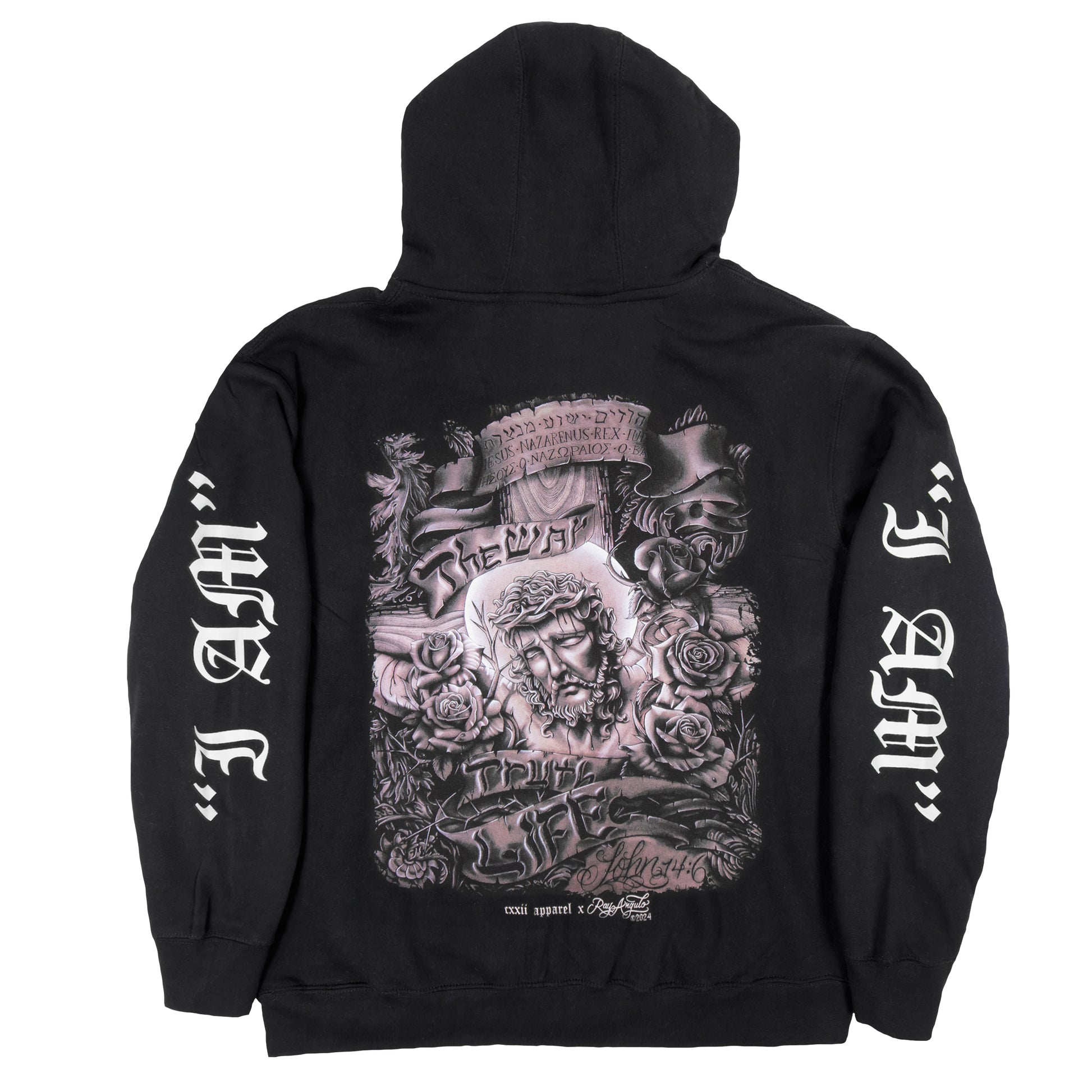 The CXXII Apparel x Ray Angulo x CTA Collection "The Way,Truth & Life" Black Heavy Weight Hoodie.