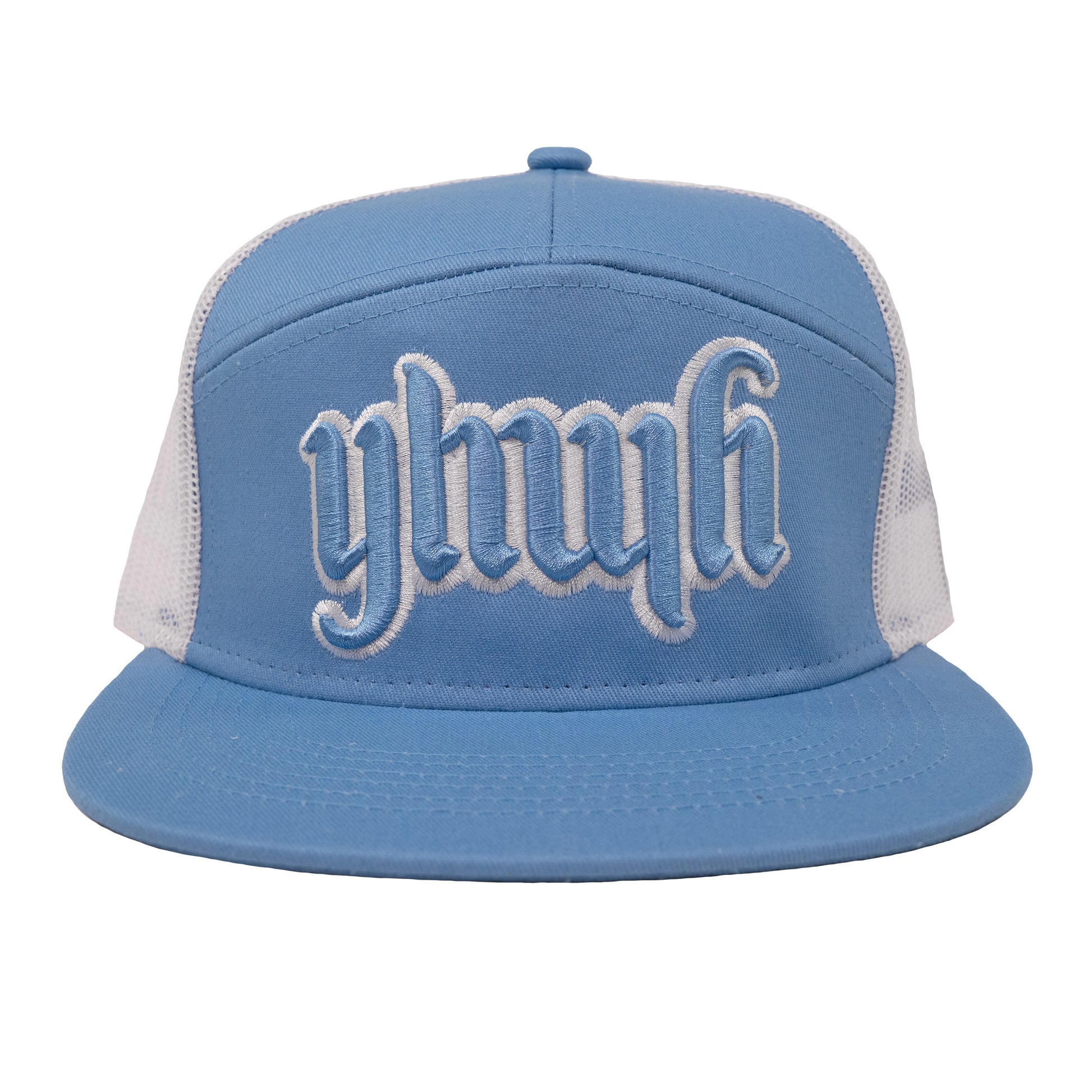 YHWH 7 Panel Carolina Blue Trucker Hat
