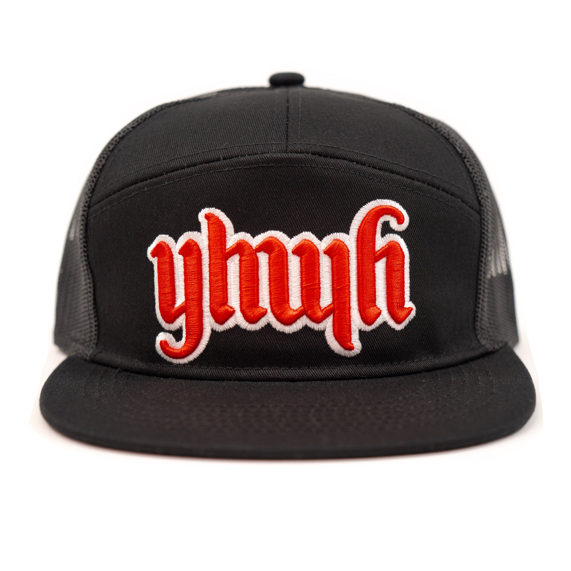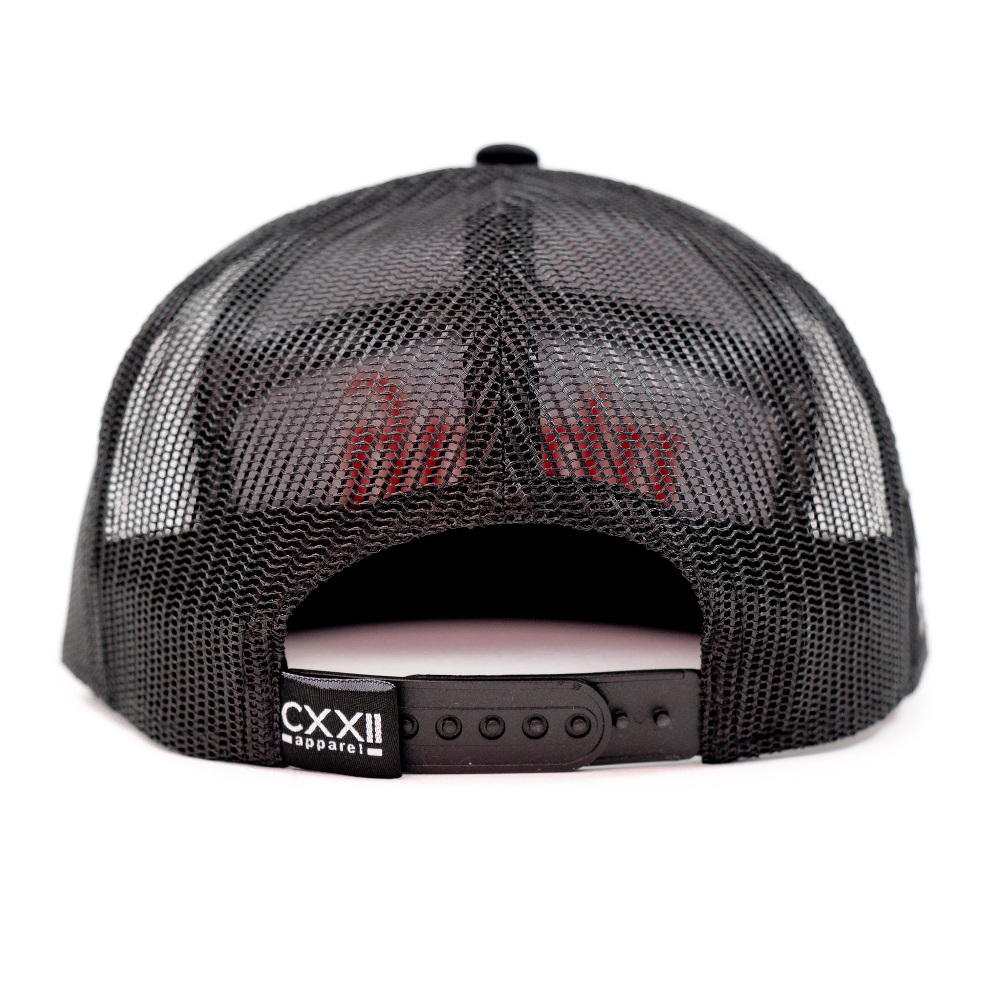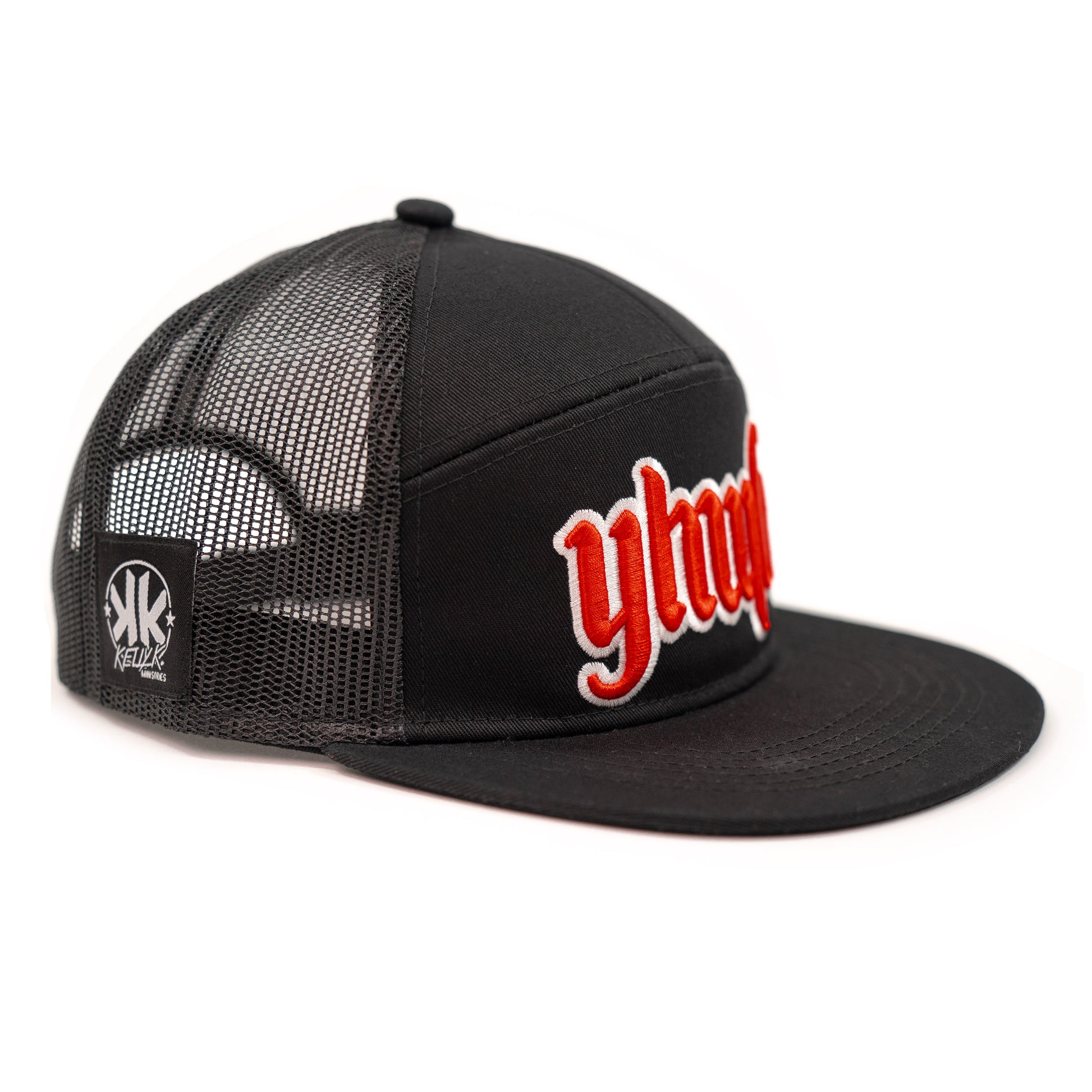 The CXXII Apparel x KellyK YHWH Collection 7 Panel Trucker Hat. ( Red / White)